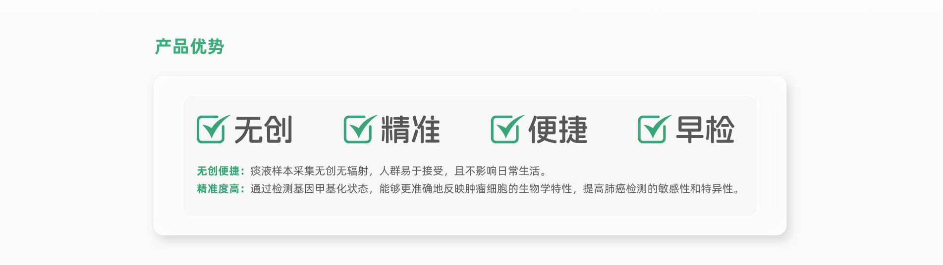 會安心?人類HOXB4、SRCIN1基因甲基化檢測試劑盒(熒光PCR法)于2025年5月29日正式獲批上市,這是首個痰液肺癌甲基化檢測試劑盒。 會安心?通過解讀痰液中脫落腫瘤細胞的基因異常改變(人類HOXB4、SRCIN1基因甲基化)進行肺癌的早期檢測,幫助發(fā)現(xiàn)患者早期肺癌病變情 況, 有希望將肺癌阻斷在早期階段,從而達到預防和根治肺癌的目的