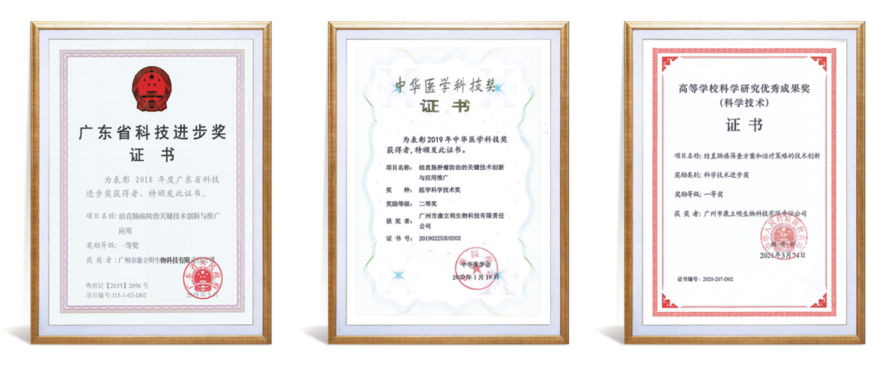 康立明生物在企業(yè)發(fā)展層面也屢獲殊榮,公司曾先后被評為廣州創(chuàng)新型中小企業(yè)、廣東省專精特新中小企業(yè),這些榮譽(yù)都是對公司創(chuàng)新能力、市場競爭力以及發(fā)展?jié)摿Φ母叨日J(rèn)可。除此之外,公司憑借卓越的科研成果和實(shí)力,榮獲了2018年廣東省科技進(jìn)步獎(jiǎng)一等獎(jiǎng)、2019年中華醫(yī)學(xué)科技獎(jiǎng)二等獎(jiǎng)、2020年教育部科學(xué)技術(shù)進(jìn)步獎(jiǎng)一等獎(jiǎng),這些重要獎(jiǎng)項(xiàng)是對康立明生物整個(gè)團(tuán)隊(duì)創(chuàng)新能力的肯定。