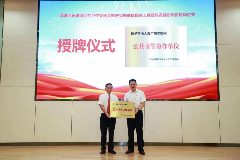 7月26日,廣州市增城區(qū)石灘鎮(zhèn)在前海人壽廣州總醫(yī)院舉行增城區(qū)石灘鎮(zhèn)公共衛(wèi)生委員會推進(jìn)實(shí)施健康民生工程暨腸道健康項(xiàng)目啟動儀式,正式拉開了石灘鎮(zhèn)常住適齡人群腸道健康檢查項(xiàng)目的序幕。